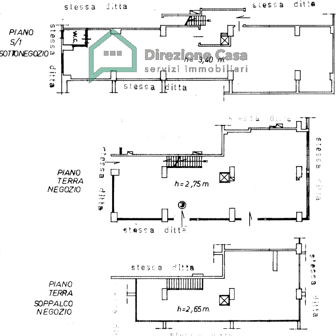 L'immobile è di 450 mq totali, posto su 3 livelli, ovvero: