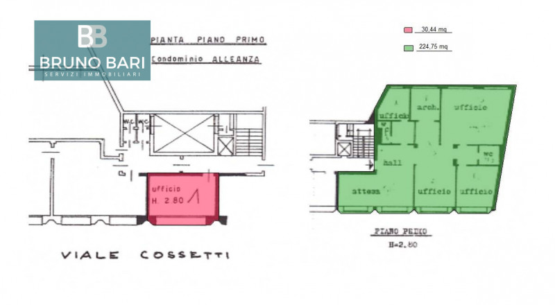 L'immobile, posto al piano primo e dotato di riscaldamento autonomo, si articola in 8 stanze ad uso ufficio e due servizi.